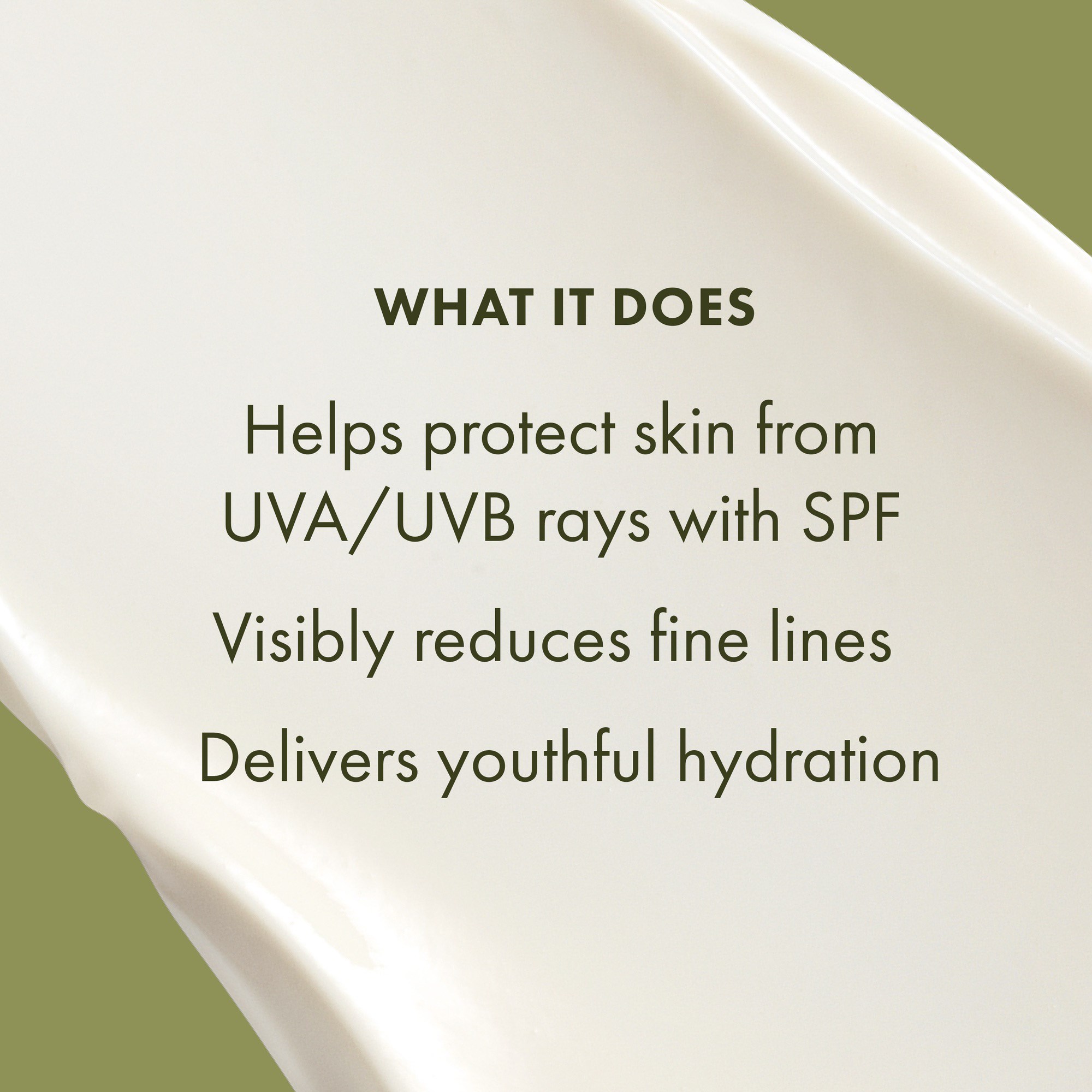 Pozbądź się zmarszczek. Nasz silnie działający krem przeciwzmarszczkowy z Anogeissusem jest wzbogacony o optymalizujący elastynę ekstrakt z nasion kopru, który pomaga widocznie zmniejszyć zmarszczki oraz przedłużający młodość Cassia alata. Krem zapewnia skórze nawilżenie oraz ochronę przed promieniowaniem UV. Rezultat – bardziej długotrwały młody wygląd. Formuła bez składników pochodzenia zwierzęcego* (z wyjątkiem wolnego od okrucieństwa miodu i wosku pszczelego).