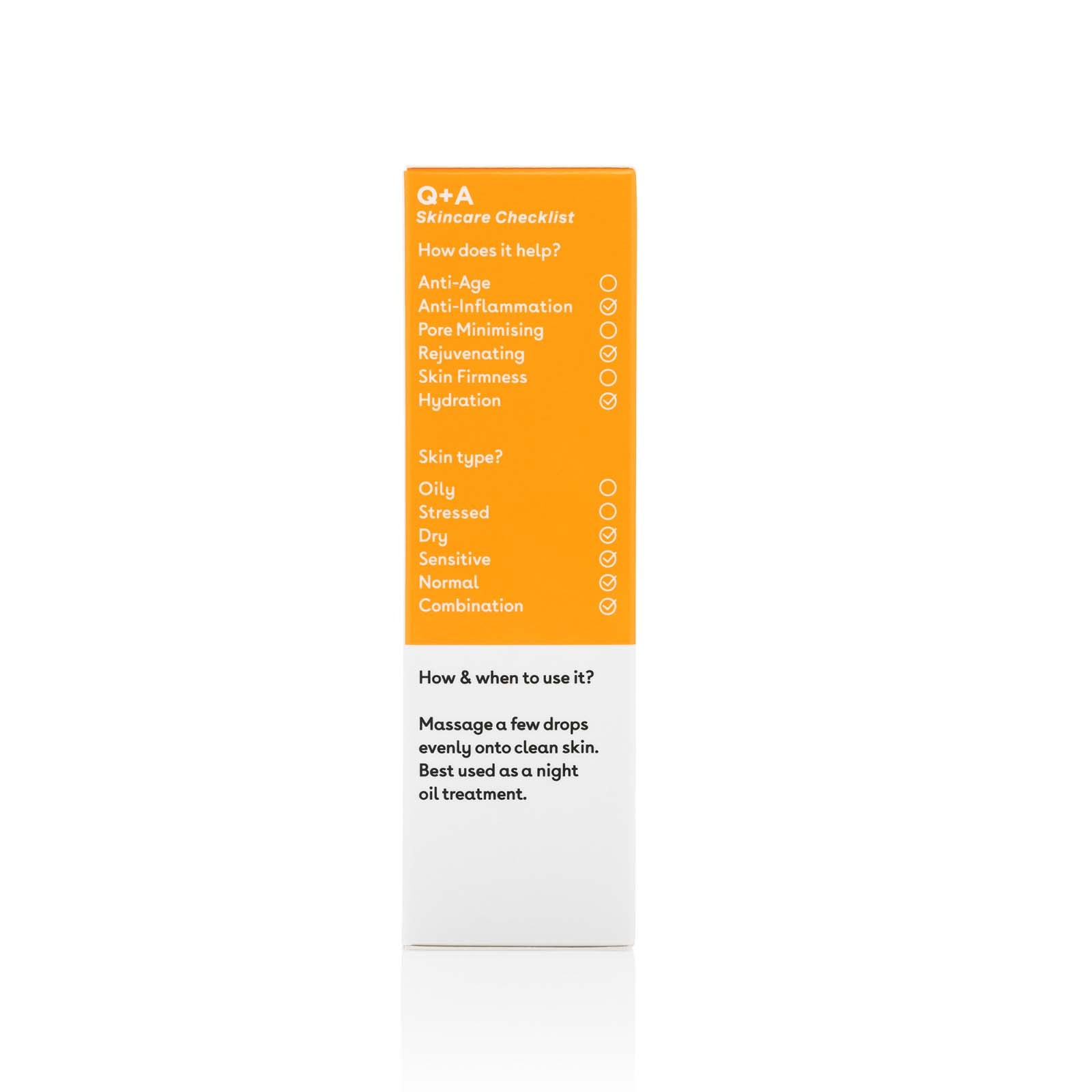 Super Food Facial Oil od Q+A to olejek do twarzy, który jest bogaty w witaminy A, C, E i F, a także pełen antyoksydantów i niezbędnych kwasów tłuszczowych. To w 100% naturalne serum działa kojąco, nawilżająco i odmładzająco na skórę. Olejek najlepiej sprawdza się jako kuracja na noc.Kluczowe składnikiOlej z nasion jojobyOlej jojoba balansuje naturalną produkcję sebum i tłuszczu w skórze, co pomaga w walce z niedoskonałościami. Łatwo się wchłania i jest idealny dla wrażliwej oraz suchej cery.Olejki z owoców leśnychOlejki pozyskiwane z owoców leśnych mają naturalnie wysokie stężenie antyoksydantów i są bogate w witaminy. Serum zawiera oleje z truskawek, malin i żurawin, żeby wymienić tylko kilka!Olej z nasion opuncjiOlej kaktusowy, pochodzący z Maroka, ma wiele korzyści i jest bogaty w witaminy E i K oraz niezbędne kwasy tłuszczowe. Dzięki wysokiemu stężeniu witamin działa kojąco, nawilża i odżywia skórę.Superfood Serum jest odpowiednie dla cery normalnej, suchej i wrażliwej.100% naturalne składniki, wegańskie, bez alkoholu, bez perfum.Nałóż niewielką ilość na czystą skórę. Najlepiej działa jako kuracja na noc.