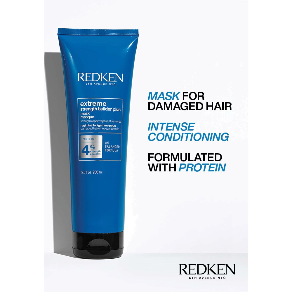 Maska do włosów Extreme Strength Builder Plus skutecznie naprawia i wzmacnia zniszczone i przesuszone włosy, dodatkowo nadając im zdrowy wygląd i czyniąc je bardziej odpornymi na uszkodzenia. Po zastosowaniu włosy zyskują natychmiastowy blask i stają się bardziej podatne na układanie. Dzięki innowacyjnemu kompleksowi Redken Strength Complex, który zawiera pomocnicze aminokwasy, w tym argininę, oraz kwasku cytrynowego, produkt wzmacnia i odbudowuje włosy oraz równoważy ich poziom pH.