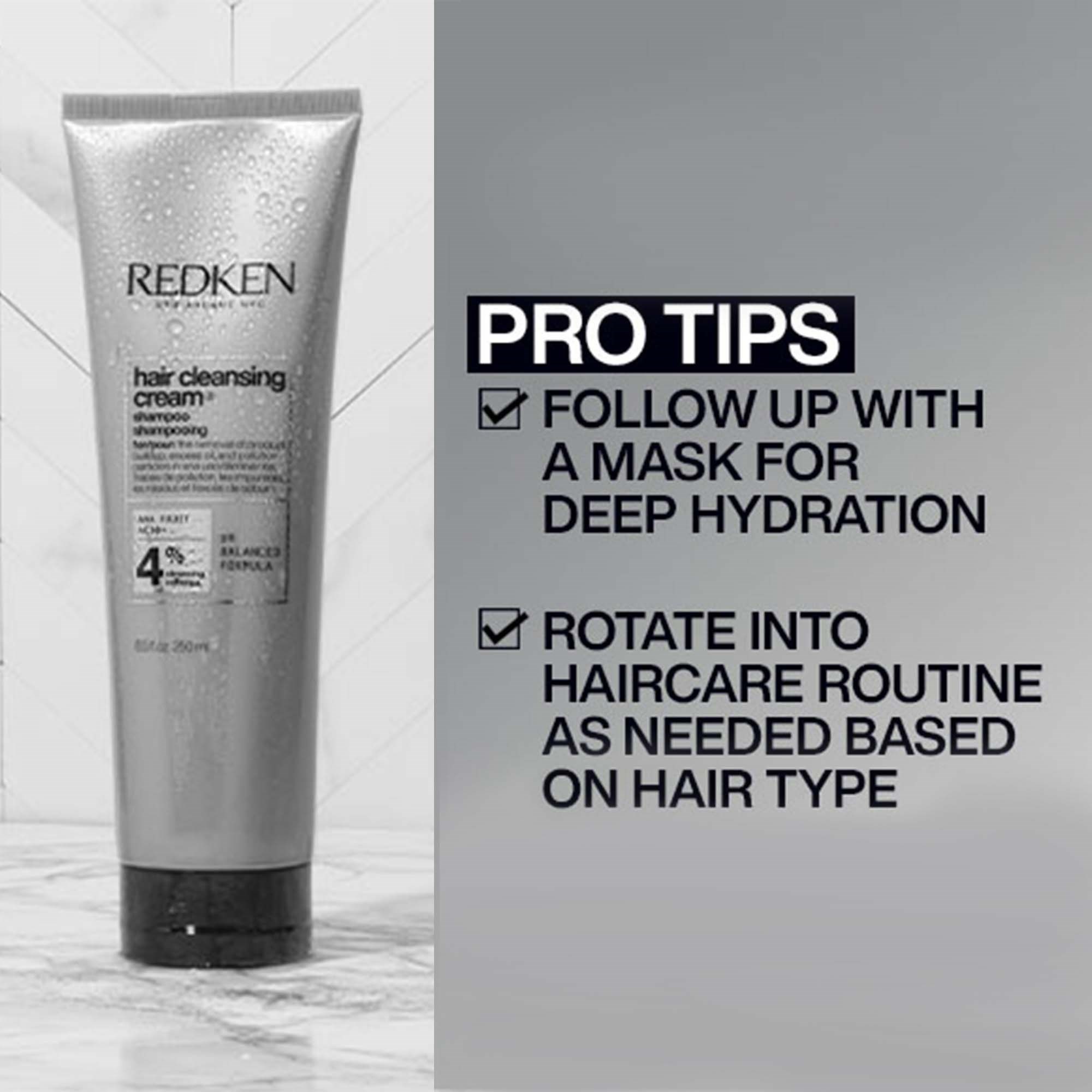 Redken Hair Cleansing Cream to szampon głęboko oczyszczający odpowiedni do wszystkich rodzajów włosów. Produkt skutecznie usuwa wszelkie pozostałości wcześniej aplikowanych produktów, nadmiar sebum, nagromadzone cząsteczki zanieczyszczeń, a nawet kamień pochodzący z twardej wody. To świetny produkt typu all-in-one wzbogacony o kwasy owocowe, który wzmacnia włosy od wewnątrz i dodaje im blasku.