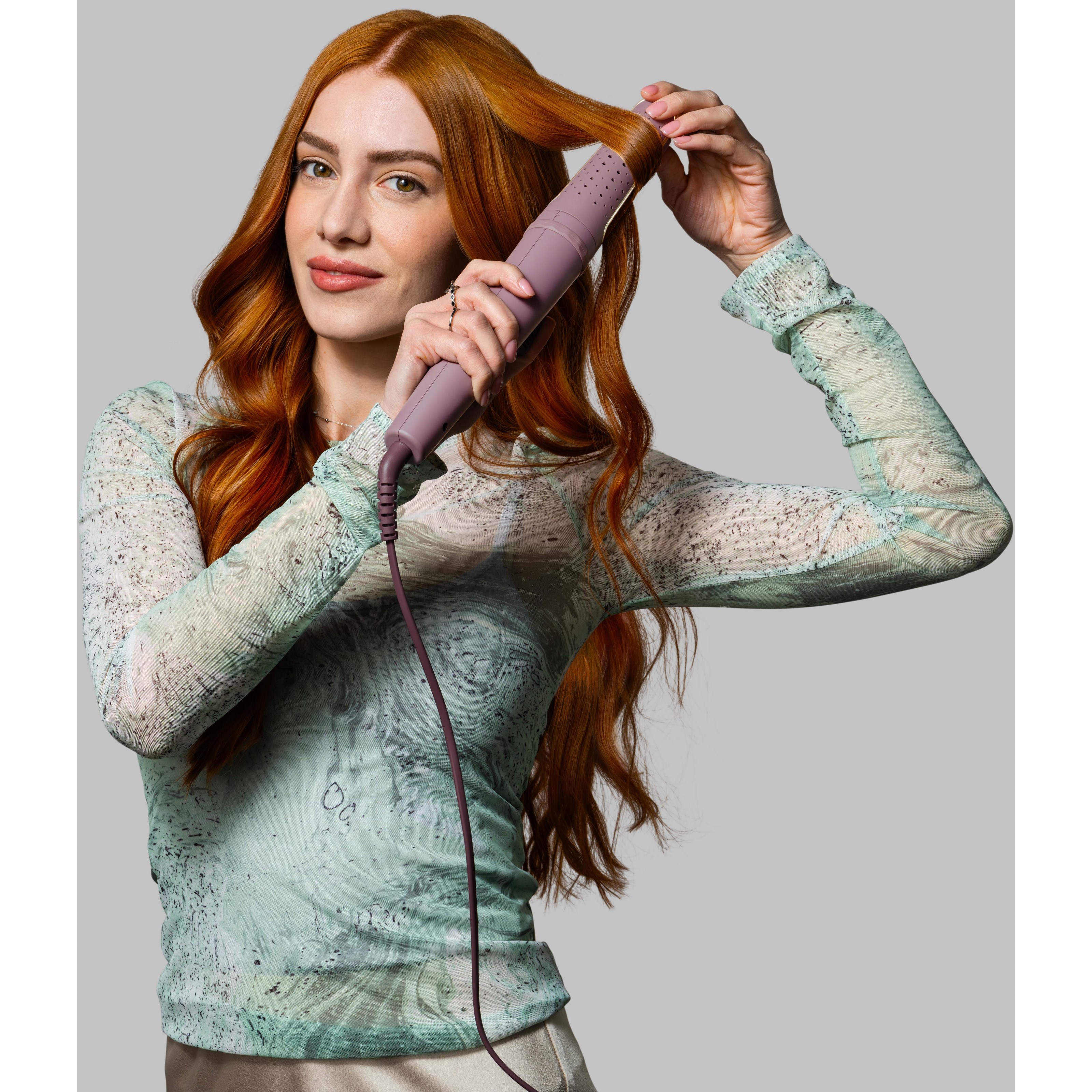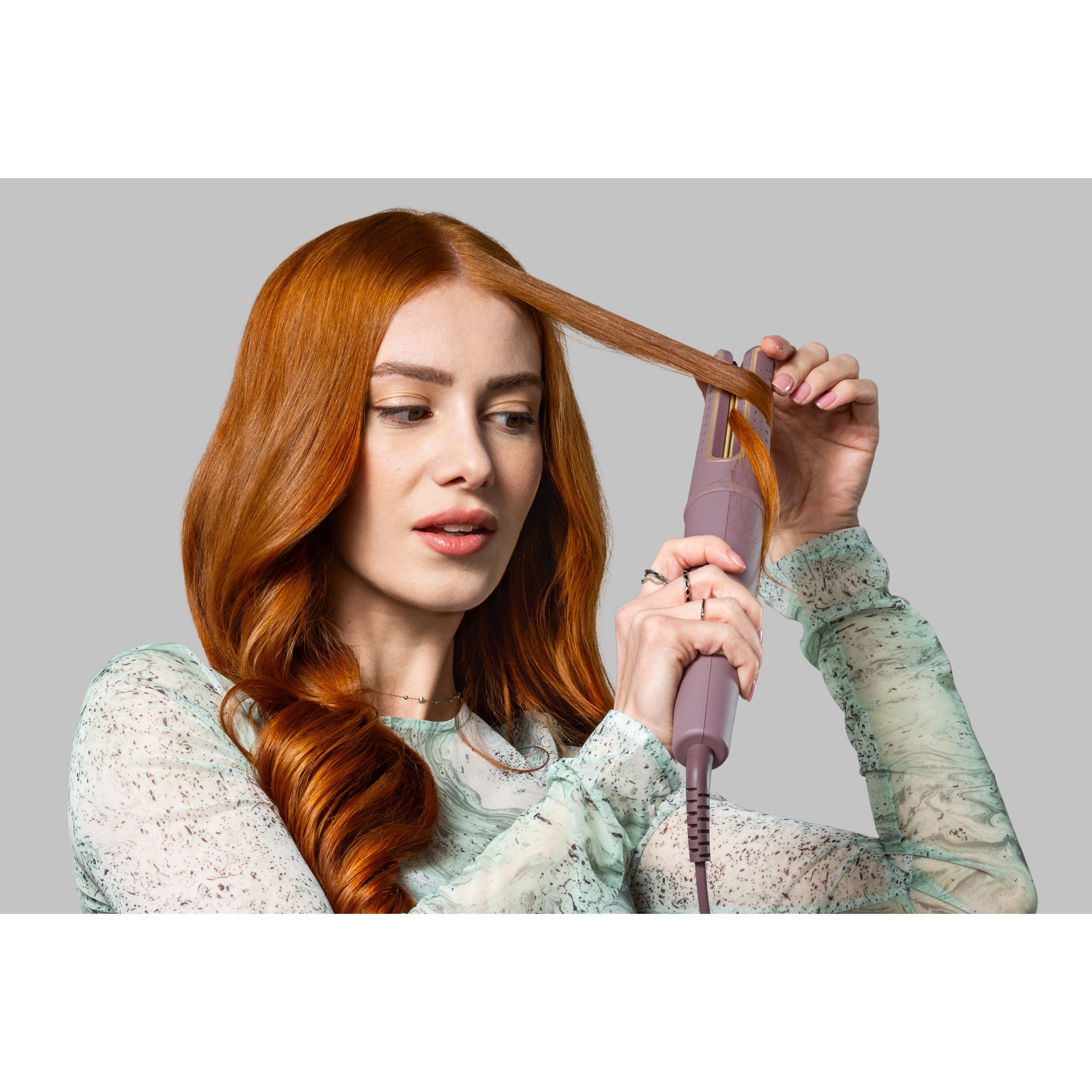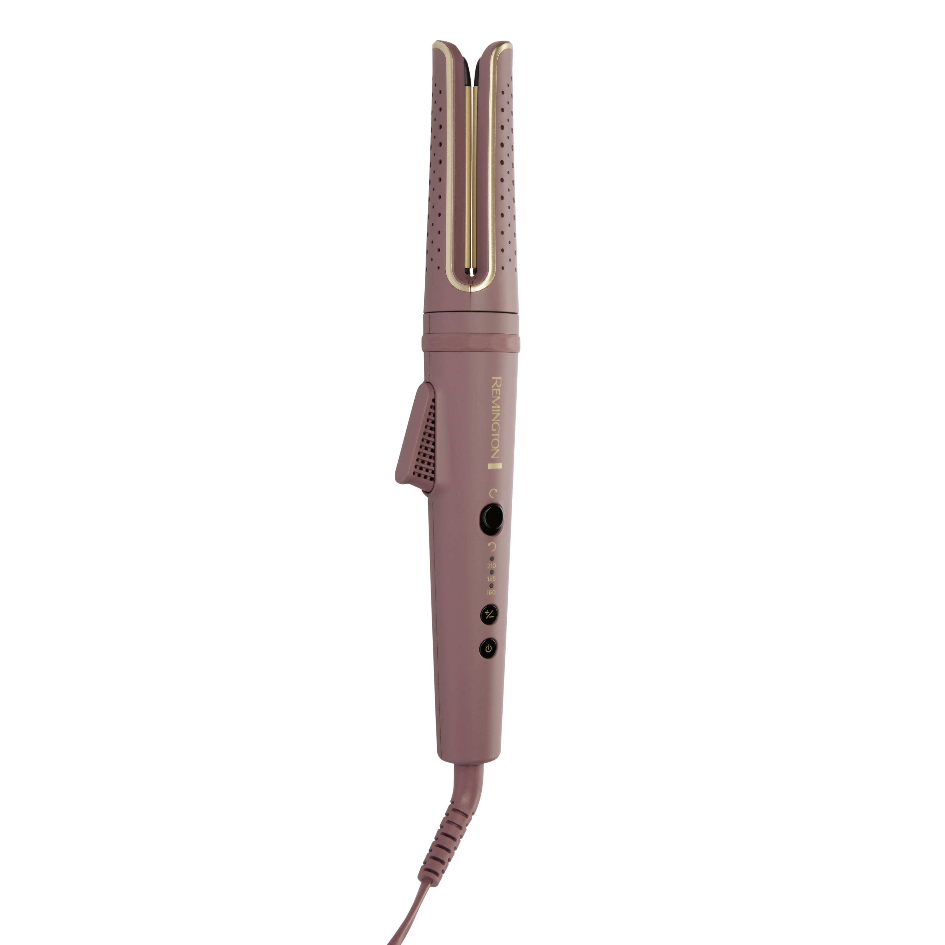 Remington CI8930 AIRvive™ Rotating Curling Wand łączy delikatną, antystatyczną technologię jonową z aktywowaną ciepłem mikrokondycjonującą formułą, zapewniając lokom długotrwałą ochronę przed puszeniem. Obrotowa lokówka ułatwia tworzenie sprężystych loków lub miękkich fal bez konieczności skręcania nadgarstka. Ceramiczne płytki z 10 razy większą ilością ceramiki gładko suną po włosach, nie ciągnąc ich i nie plącząc.Sposób użycia:1. Podłącz urządzenie do gniazdka.2. Naciśnij przycisk (C), aby je włączyć.3. Wybierz odpowiednią temperaturę dla swojego rodzaju włosów i rodzaju loków, jakie chcesz uzyskać, za pomocą przycisku +/- z boku urządzenia. Wybrana temperatura wyświetli się na ekranie.4. Ekran przestanie migać, gdy urządzenie będzie gotowe do użycia, a wybrana temperatura zostanie osiągnięta.