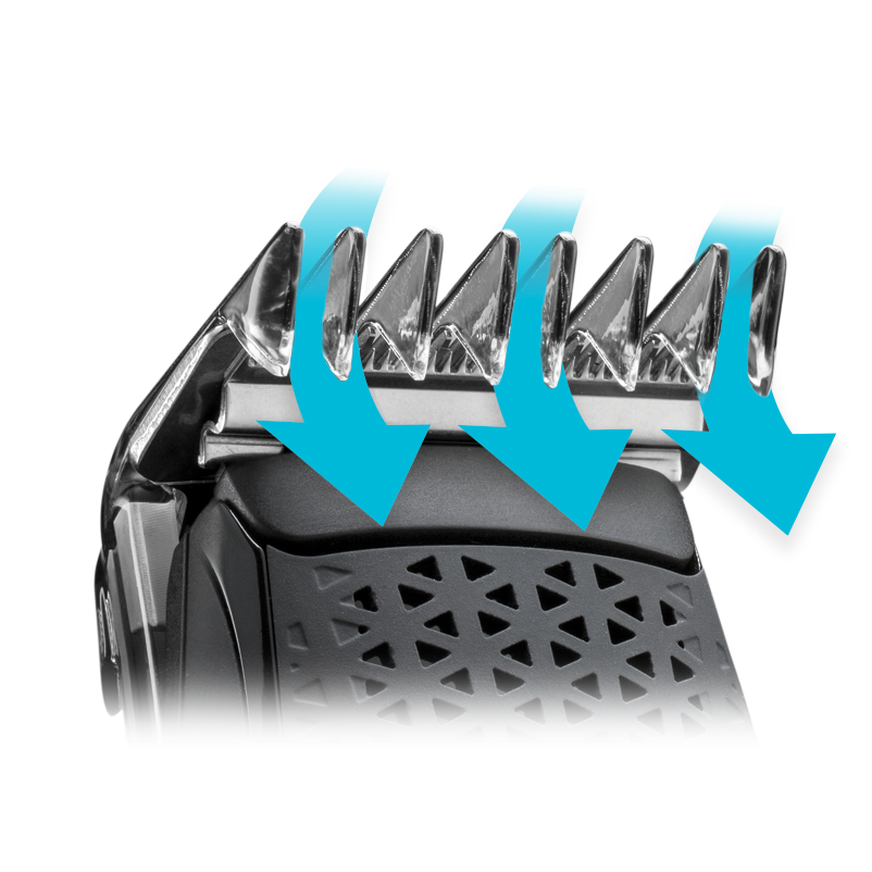 – Nasadka do krótkich włosów ma 10 ustawień długości od 3-13 mm