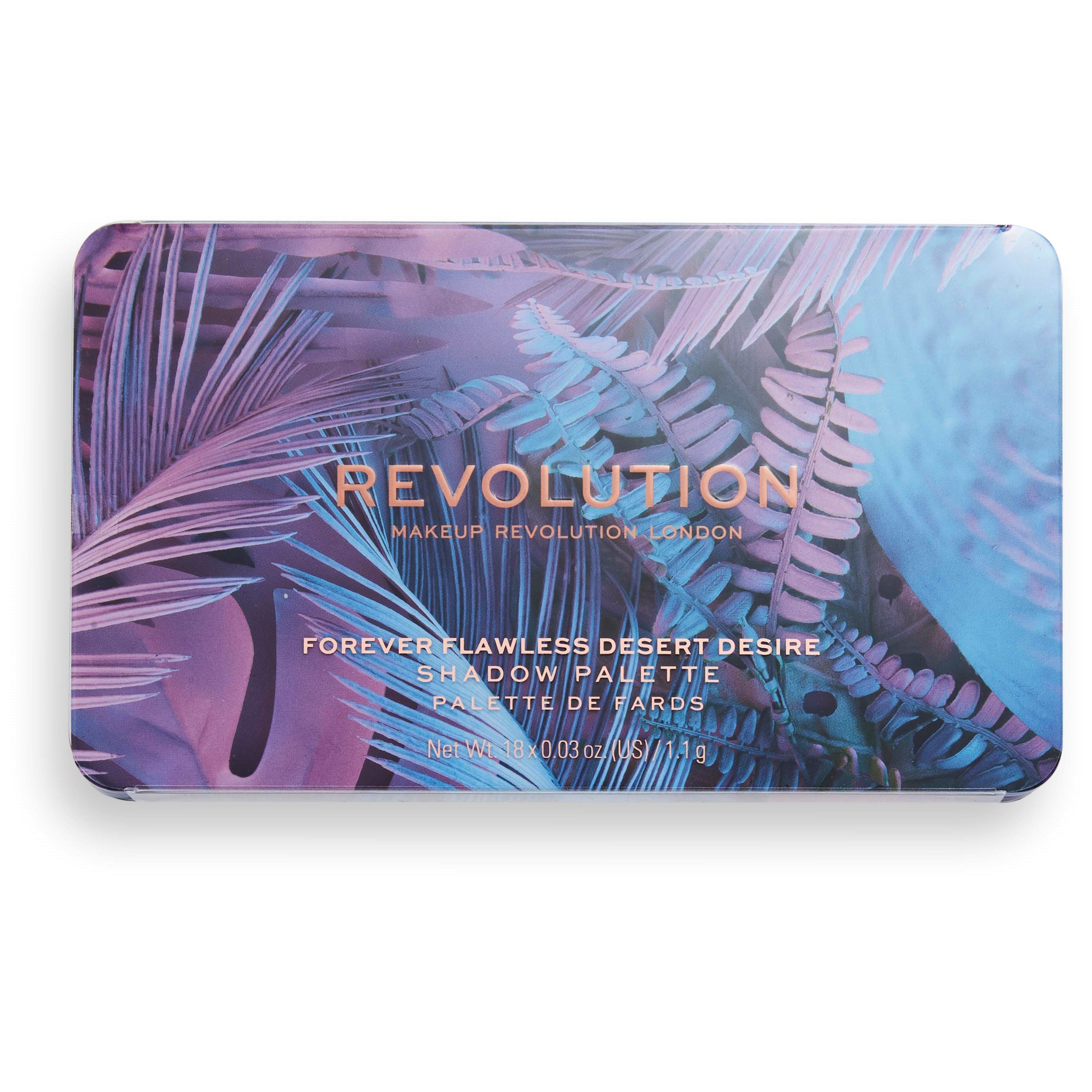 Oto najnowszy członek rodziny Forever Flawless! Przywitaj paletę Desert Desire, inspirowaną tradycyjną pustynią z nutą ibizańskich nocy.Paleta zawiera 18 odcieni intensywnie napigmentowanych, bogatych tonów klejnotów, odcieni nude oraz wspaniałych brązowych cieni z połyskiem. To must-have na lato! Formuła zawiera te same kremowe matowe i napigmentowane cienie z połyskiem, które znasz i kochasz! Najlepiej używać z Revolution Ultimate Eye Base, aby kolory naprawdę ZABŁYSNĘŁY!Paleta zawiera:Odcień 1 – Icey White Shimmer.Odcień 2 – Matte Pink.Odcień 3 – Vibrant Matte Blue.Odcień 4 – Orangey Nude.Odcień 5 – Matte Light Sage Green.Odcień 6 – Shimmer Orange Copper.Odcień 7 – Matte Pastel OrangeOdcień 8 – Shimmer Pink.Odcień 9 – Matte Sage Green.Odcień 10 – Gold Shimmer.Odcień 11 – Vibrant Ocean Blue.Odcień 12 – Matte Fuchsia.Odcień 13 – Matte Pale Nude.Odcień 14 – Brown Copper ShimmerOdcień 15 – Rich Matte BrownOdcień 16 – Matte TealOdcień 17- Rich Matte PurpleOdcień 18 – Matte Pale Nude
