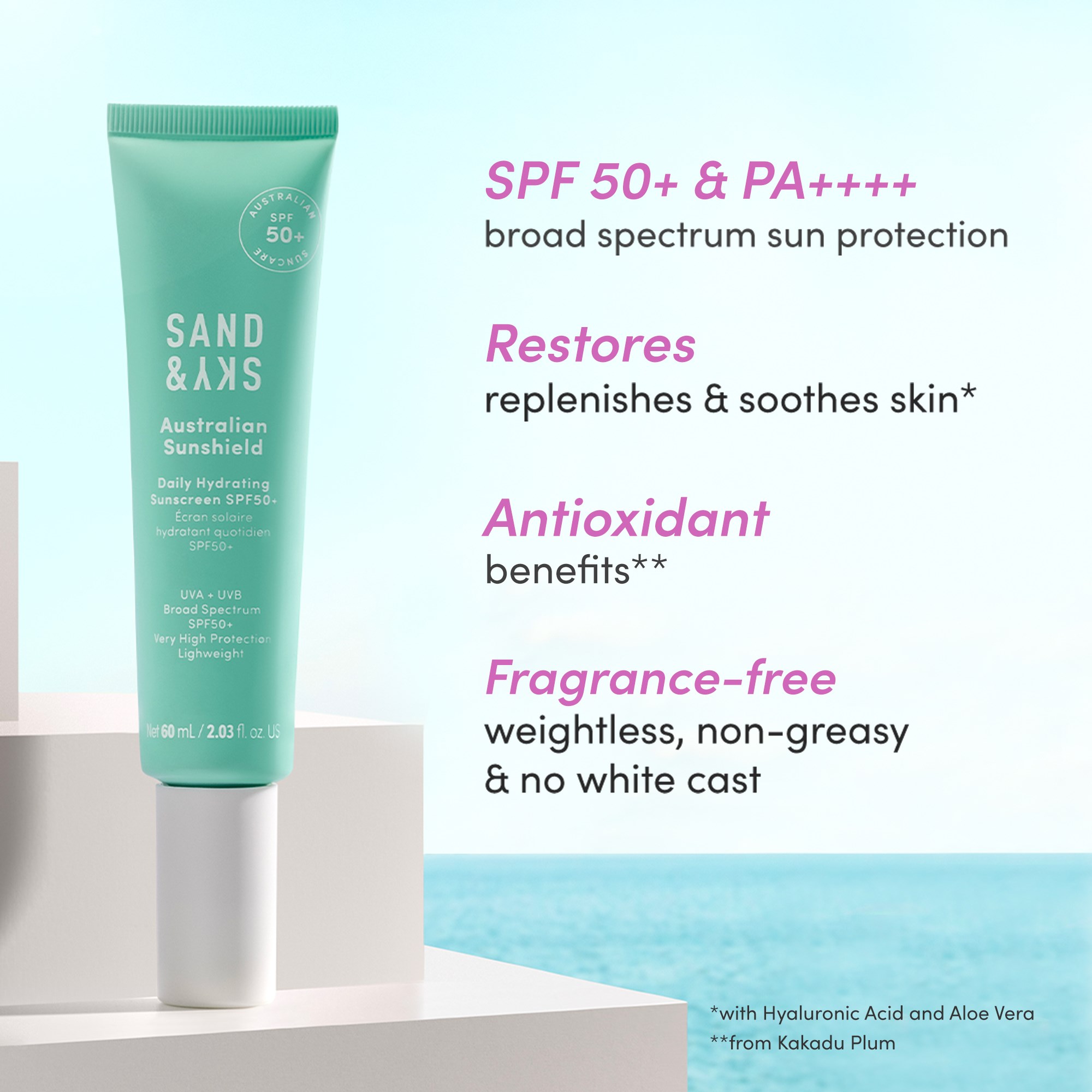 Sand & Sky Sunscreen Daily Hydrating Sunscreen SPF 50+ 60 ml