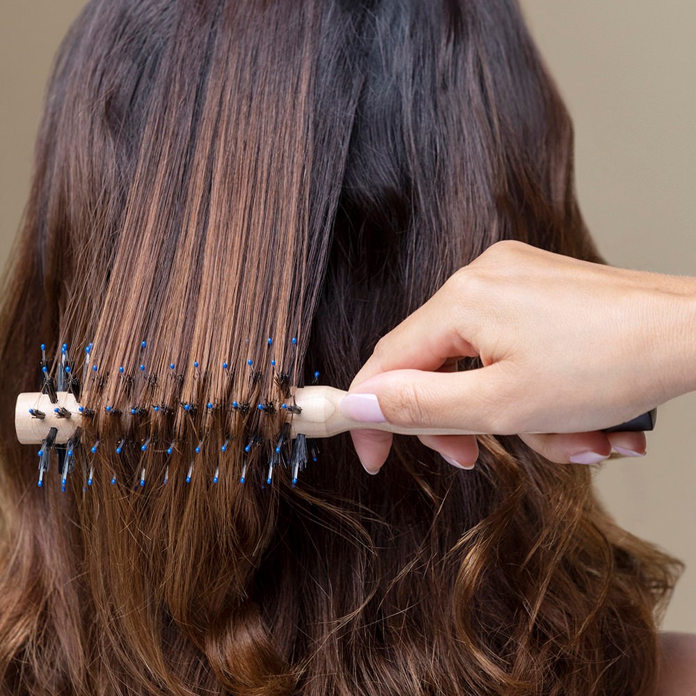 Okrągła szczotka do włosów Sisley Hair Rituel The Blow Dry Brush N°2 jest idealna do stylizacji średniej długości i długich włosów w falowany look lub do wygładzania grubych i falowanych włosów podczas suszenia.Można ją również wykorzystać do stylizacji prostych włosów.Szczotka z włosiem z dzika delikatnie suszy włosy.Miękkie włosie lepiej trzyma włosy i ułatwia suszenie.Włosy stają się proste, lśniące i miękkie. Zmniejsza się puszenie.Zwijaj włosy na czubku głowy, ustaw suszarkę, szczotkuj do tyłu i susz.