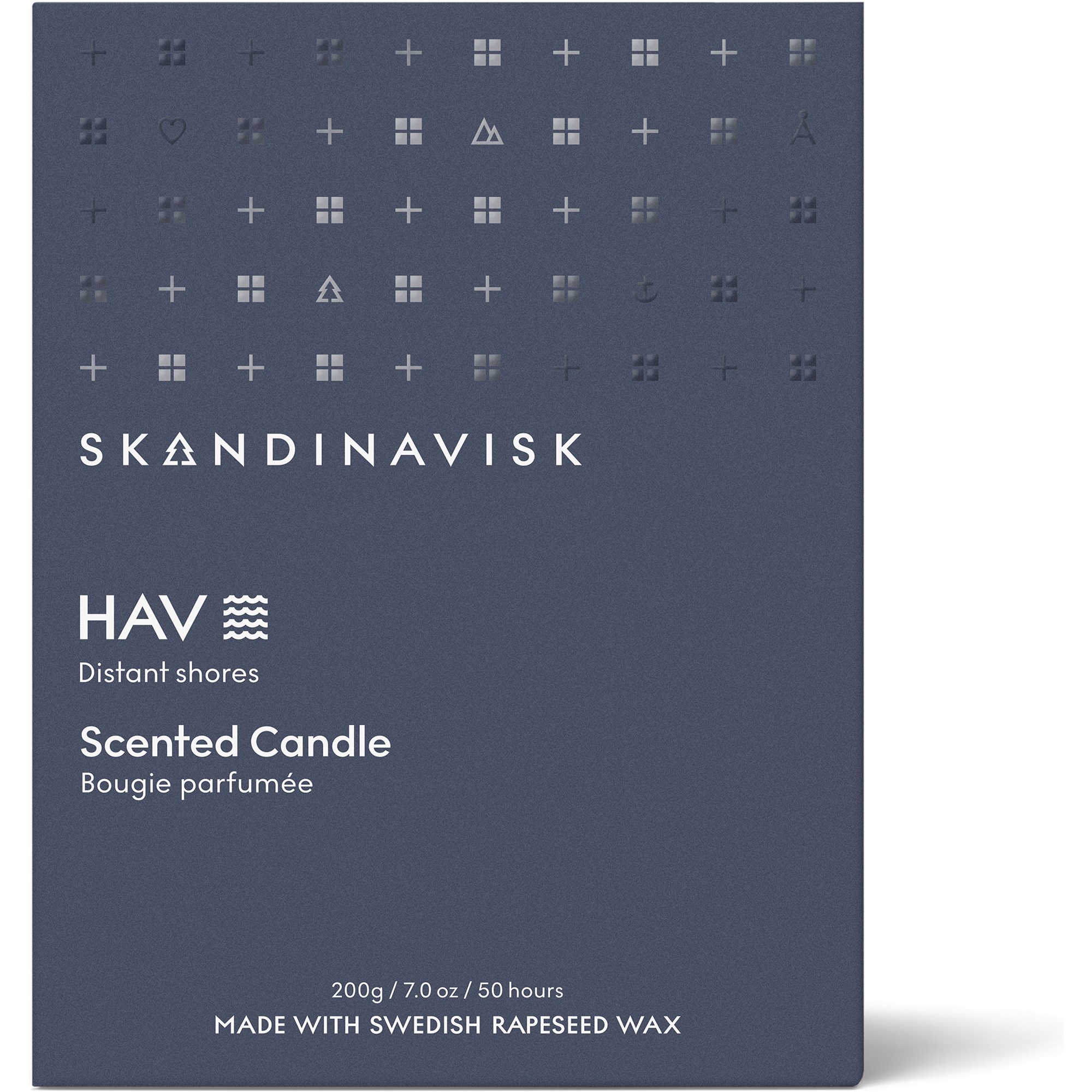 Świeca zapachowa z wosku rzepakowego pochodzącego ze zrównoważonych upraw, wolna od GMO, która pali się stabilnie i powoli, minimalizując wpływ na środowisko. Świece są wegańskie i cruelty free (więcej niż tylko produkt nietestowany na zwierzętach). Umieszczone w matowych szklanych pojemnikach z grawerowanym, certyfikowanym przez FSC wieczkiem z drewna bukowego. Opakowanie papierowe pochodzi z lasów w Szwecji i jest drukowane naturalnymi barwnikami.200 g, czas palenia 50 godzin. Pusty pojemnik po świecy można ponownie wykorzystać na świeczkę typu tealight lub do przechowywania.HAV – skandynawskie słowo oznaczające 'morze'Wody Arktyki, Północnego Atlantyku i Bałtyku otaczają region skandynawski, tworząc jedne z najdłuższych i najdzikszych wybrzeży na świecie.Opis zapachu: Słona bryza, niebieskie algi, głóg i róża nadmorska.Zalecamy, aby świeca paliła się maksymalnie 3 godziny na raz. Przy pierwszym zapaleniu pozwól jej palić się, aż wosk osiągnie krawędź szklanki, aby uniknąć powstawania "tunelu" w wosku. Po ostygnięciu przytnij knot do 0,5 cm przed ponownym zapaleniem. Zostaw 0,5 cm niespalonego wosku na dnie świecy, aby zapobiec bezpośredniemu działaniu ciepła szkła na powierzchnię pod świecą. Wieczko z drewna bukowego zaprojektowane jest jako podstawka pod zapaloną świecę, aby chronić delikatne powierzchnie, a także możesz zgasić płomień przykrywając go wieczkiem. Po użyciu zalecamy umycie i ponowne wykorzystanie pojemnika na przykład na świeczkę tealight, do przechowywania lub recyklingu jako szkło.