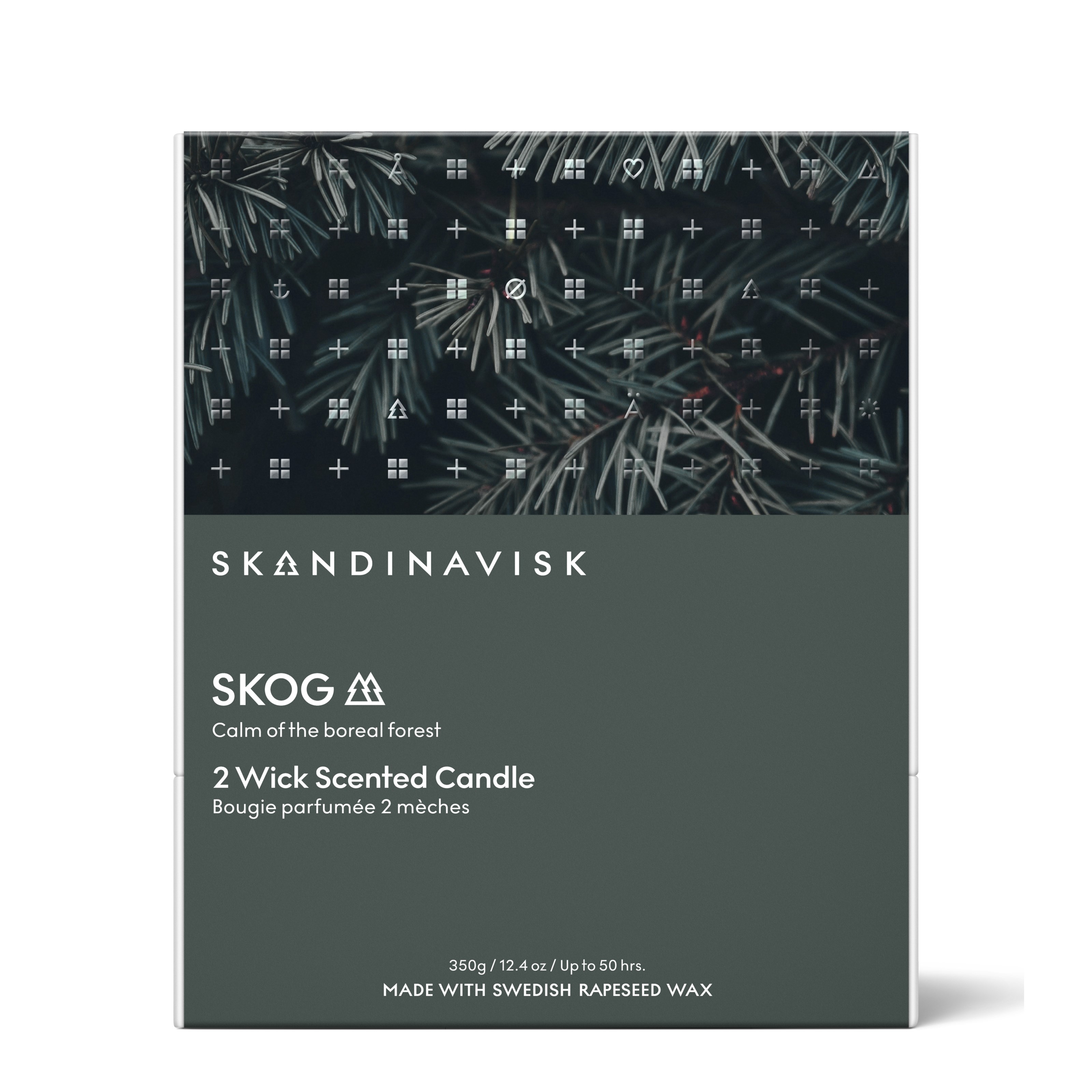 Opis zapachu: igły sosnowe, szyszki, sok brzozowy i konwalia.Świeca zapachowa z limitowanej edycji w sezonowym designie i eleganckim opakowaniu. Wosk pochodzi z ekologicznie uprawianego, niemodyfikowanego genetycznie oleju rzepakowego, zmieszanego tak, aby palił się stabilnie i powoli, z minimalnym wpływem na środowisko. Produkt wegański i nietestowany na zwierzętach. Świeca znajduje się w kolorowym szklanym pojemniku z bawełnianym knotem i grawerowaną pokrywką z certyfikowanego drewna bukowego FSC. Opakowania i pokrywki pochodzą z nordyckich lasów oznaczonych certyfikatem FSC, a nadruki wykonano naturalnymi barwnikami. 200 g, do 50 godzin palenia. Można ponownie wykorzystać z podgrzewaczami lub do przechowywania.SKOG – szwedzkie/norweskie słowo oznaczające „las”Obszary leśne pokrywają ponad połowę powierzchni krajów skandynawskich, rozciągając się od najdalej na południe położonego hrabstwa Szwecji aż po koło podbiegunowe.Sposób użycia:Zalecamy, aby świeca paliła się maksymalnie 3 godziny na raz. Przy pierwszym użyciu pozwól jej palić się, aż wosk osiągnie krawędź szklanki, aby uniknąć powstawania „tunelu” w wosku. Po ostygnięciu świecy przytnij knot do 0,5 cm przed ponownym zapaleniem. Zostaw 0,5 cm niespalonego wosku na dnie świecy, aby zapobiec bezpośredniemu działaniu ciepła szkła na powierzchnię pod świecą. Drewniana pokrywka została zaprojektowana jako podstawka pod zapaloną świecę, aby chronić delikatne powierzchnie, a także możesz zgasić płomień pokrywką. Po użyciu zalecamy umycie i ponowne wykorzystanie pojemnika na świecę, na przykład do podgrzewaczy, przechowywania lub recyklingu jako szkło.