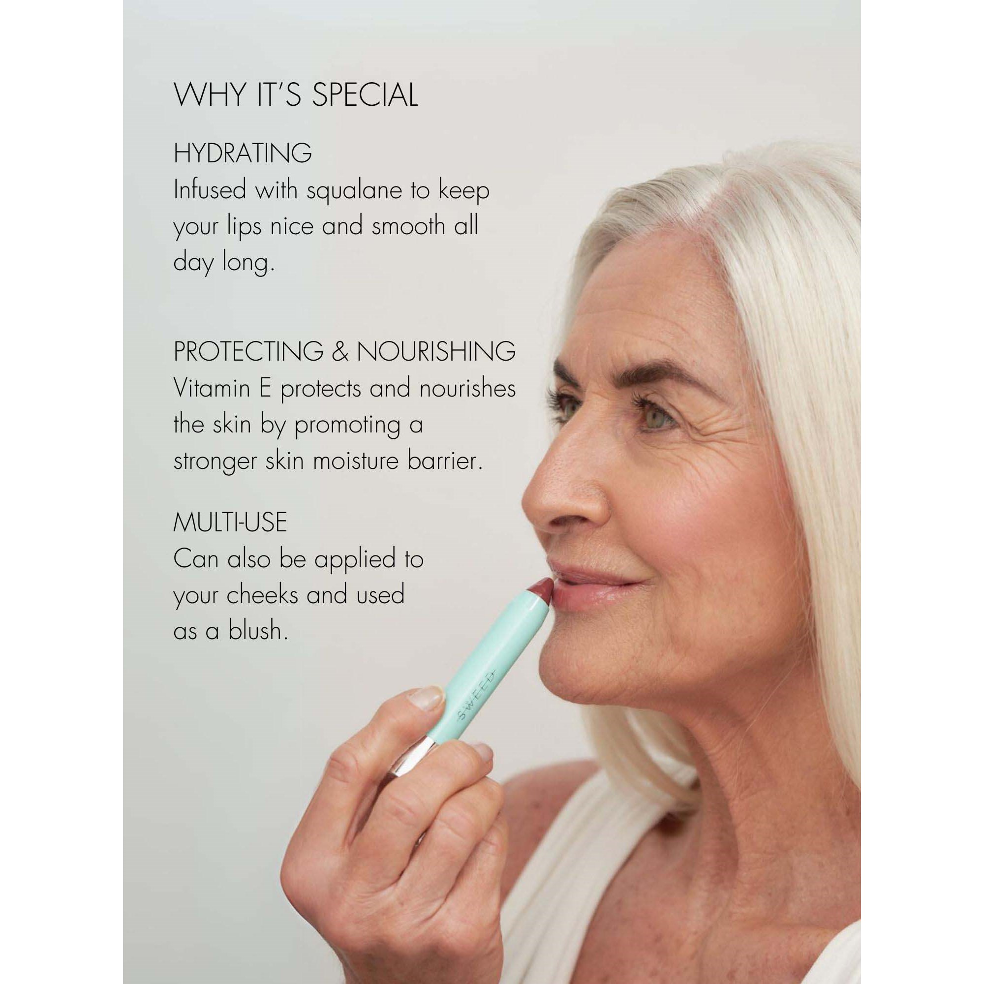 Le Lipstick to ultra miękka pomadka o niezwykle kremowej, odżywczej i nawilżającej formule balsamu, która nadaje ustom piękny blask i efekt wypełnienia. Dzięki kolorze, którego intensywność można łatwo budować, niezwykle przyjemnie się nosi i pozostawia usta z niebiańsko gładko. Czysta, naturalna i wegańska formuła.