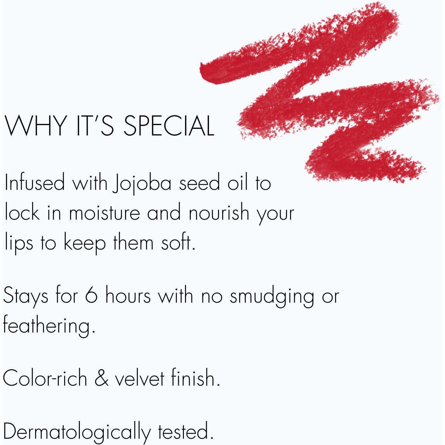 Sweed Lip Liner to luksusowa, wysoko napigmentowana i aksamitna kredka, która gładko sunie po ustach. Użyj jej, aby powiększyć i wymodelować usta lub jako bazę na całych ustach, aby szminka trzymała się na miejscu. Miękka formuła zapewnia długotrwały efekt, który utrzymuje się przez 6 godzin. Kredka jest wegańska, zawiera naturalne składniki, a na końcu znajdziesz wegański pędzelek do profesjonalnej aplikacji.Classic Red to idealny odcień czerwieni.
