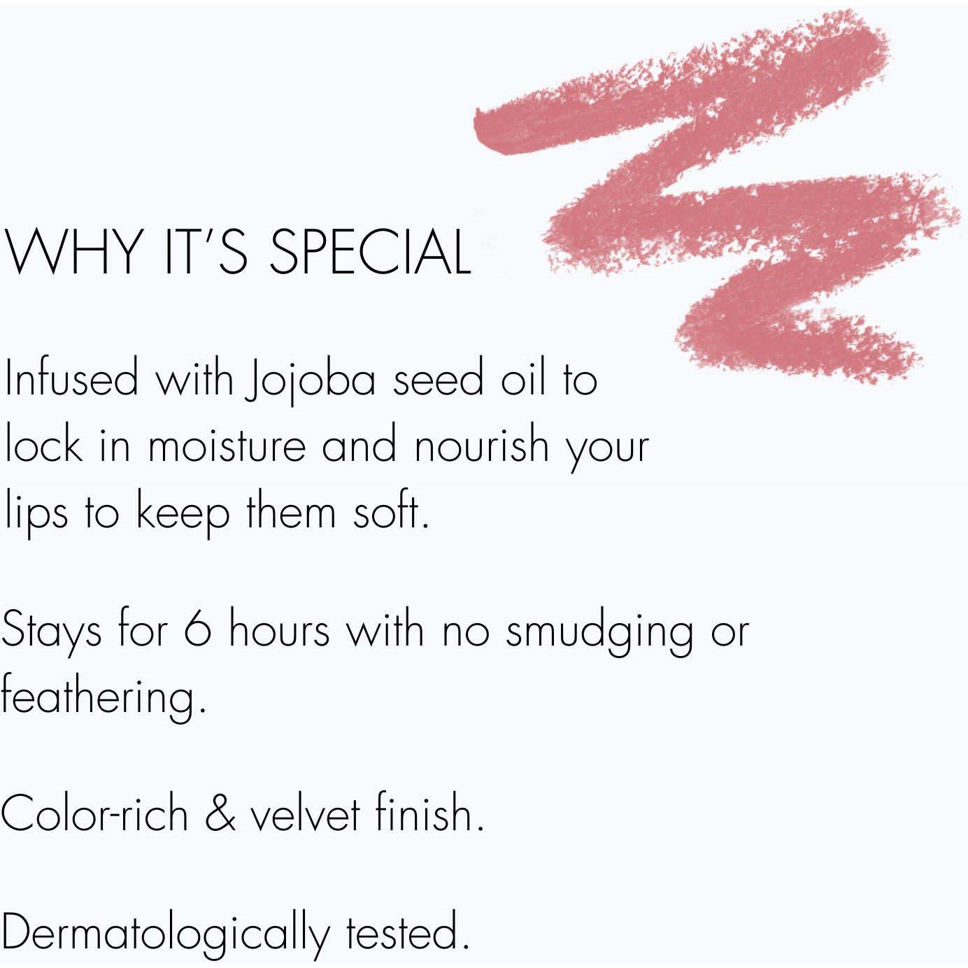 Sweed Lip Liner to luksusowa, wysoko napigmentowana i aksamitna kredka, która gładko sunie po ustach. Użyj jej, aby powiększyć i wymodelować usta lub jako bazę na całych ustach, aby szminka trzymała się na miejscu. Miękka formuła zapewnia długotrwały efekt, który utrzymuje się przez 6 godzin. Kredka jest wegańska, zawiera naturalne składniki, a na końcu znajduje się wegański pędzelek do profesjonalnej aplikacji.Lou Lou to vintage różowy odcień, który pięknie podkreśla i uwydatnia usta.