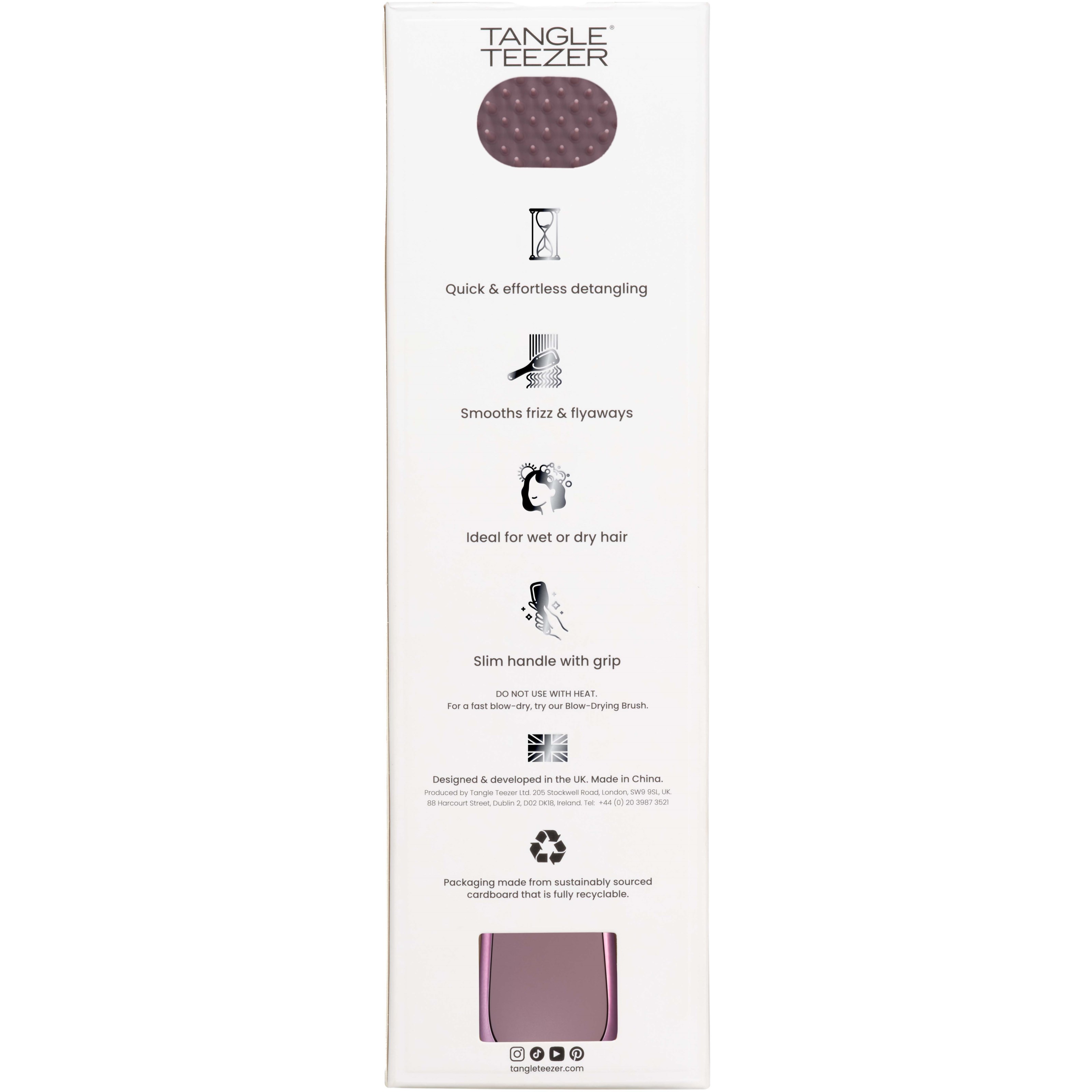 Fascynująca ewolucja klasycznej miedzi. Nasza nowa szczotka Ultimate Detangler Chrome Mauve Copper to delikatna mieszanka modnego fioletu i błyszczących odcieni miedzi. Nowa kolekcja chromowa inspirowana jest futuryzmem, wirtualną rzeczywistością i metaverse, które są najnowszymi trendami w branży mody i urody. Szczotka Ultimate Detangler gładko sunie po włosach. Opatentowana technologia zębów o dwóch różnych długościach delikatnie rozczesuje mokre włosy, co oznacza mniej uszkodzeń. Długie zęby rozplątują kołtuny, podczas gdy krótsze zęby zapobiegają puszeniu się i sprawiają, że włosy są jedwabiście gładkie – współpraca w najlepszym wydaniu!Sposób użycia:Zacznij od rozczesywania końcówek włosów szczotką, a następnie przechodź w górę, aż będziesz mogła bez problemu czesać od nasady aż po końce. Kontynuuj czesanie wzdłuż głowy i całych włosów. Szczotka może być również używana do równomiernego rozprowadzania szamponu i odżywki na mokrych włosach.