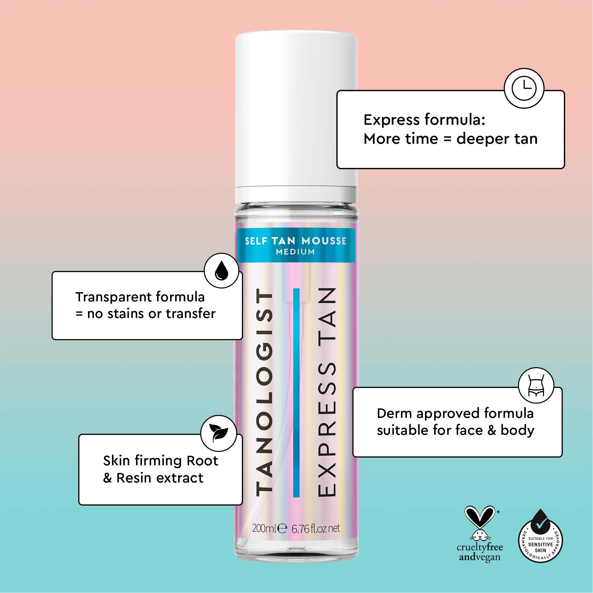 Osiągnij perfekcyjną, długotrwałą opaleniznę z naszym całkowicie przezroczystym musującym produktem. Ta formuła jest superłatwa w aplikacji, nie zostawia smug i szybko schnie. Jest wolna od barwników, co oznacza brak zatykania porów, suchości czy przenoszenia. Wzbogacona naszą sygnaturową trójką składników: różowym grejpfrutem, jagodami goji i jałowcem, aby skóra była nie tylko promienna, ale także jaśniejsza, gładsza i ultra nawilżona. Widoczne efekty już po 1–4 godzinach. Sposób użycia:Aplikuj na skórę za pomocą gładkich ruchów od głowy do stóp, korzystając z rękawicy do opalania bez słońca dla najlepszych rezultatów. Dokładnie umyj ręce po aplikacji.