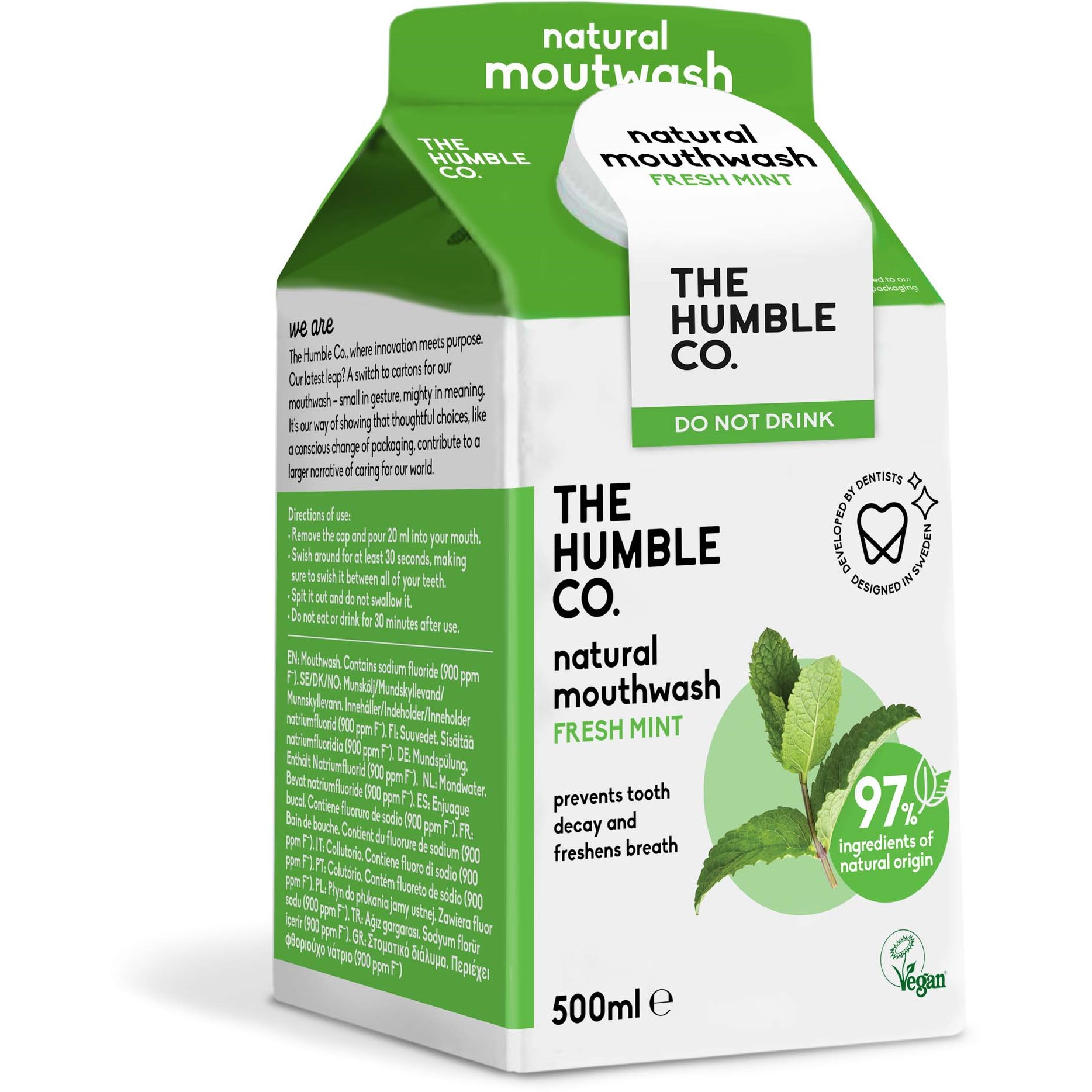 The Humble Co. Humble Natural Mouthwash Fresh Mint to płyn do płukania ust z 96% naturalnych składników, który zwalcza stany zapalne dziąseł, płytkę nazębną i próchnicę. Naturalny miętowy smak, 0% alkoholu i 0,05% fluoru to idealne uzupełnienie codziennej rutyny. Każdy zakup produktów The Humble Co. wspiera projekty zdrowotne i zrównoważony rozwój w potrzebujących społecznościach na całym świecie. Wszystkie produkty są w 100% wegańskie i nietestowane na zwierzętach.Sposób użycia:Otwórz płyn i wlej 10 ml (2 łyżeczki). Przepłucz usta przez co najmniej 30 sek., 1–2 razy dziennie po umyciu zębów. Nie połykaj. Nie jedz i nie pij przez 30 min po płukaniu.