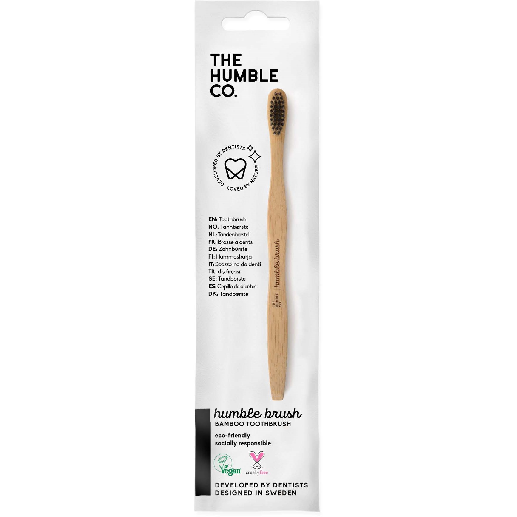 Humble Brush to szczoteczka do zębów z uchwytem z bambusa, pokrytym naturalnym woskiem dla maksymalnej higieny.Średnio miękkie włosie z wysokiej jakości nylonu bez BPA zawiera 65% materiałów roślinnych z oleju rycynowego. Szczoteczka do zębów zapakowana jest w nadające się do recyklingu opakowanie papierowe.Każdy zakup produktów The Humble Co. wspiera projekty zdrowotne i zrównoważony rozwój w potrzebujących społecznościach na całym świecie. Wszystkie produkty są w 100% wegańskie i nietestowane na zwierzętach.Sposób użycia:Stomatolodzy zalecają metodę 2-2: myj zęby przez 2 min rano i 2 min wieczorem miękką szczoteczką i pastą z fluorem. Humble Brush działa tak samo długo jak tradycyjna plastikowa szczoteczka. Stomatolodzy zalecają wymianę szczoteczki co 3 miesiące i po chorobie. Przechowuj szczoteczkę w suchym miejscu między użyciami.