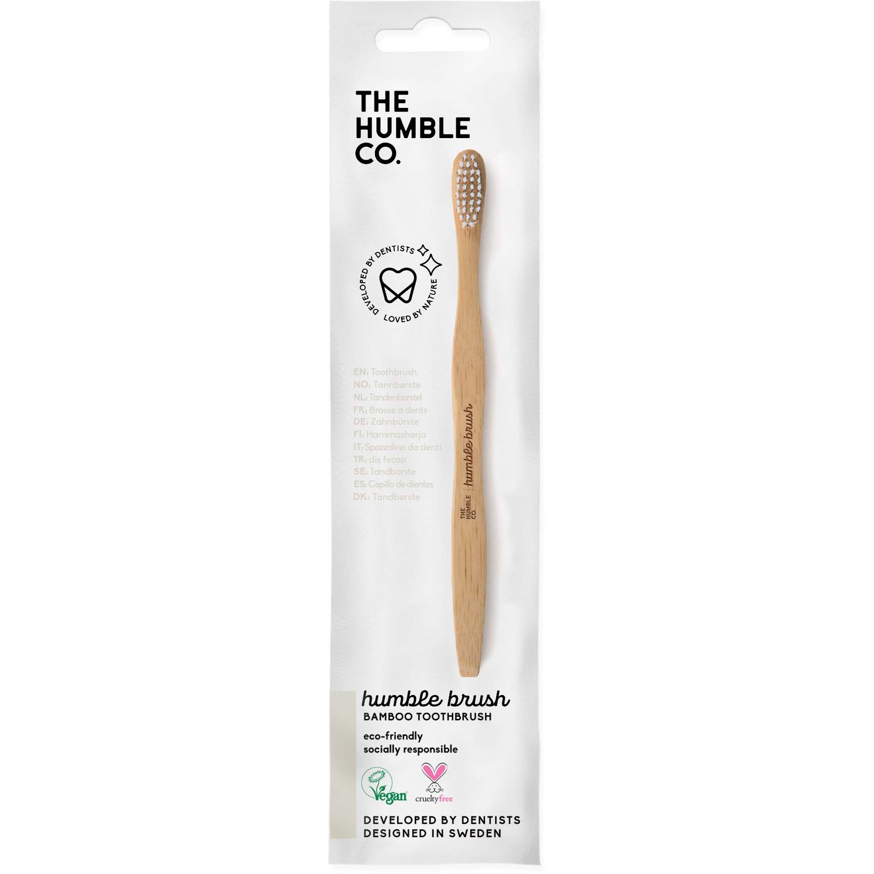 Humble Brush to szczoteczka do zębów z uchwytem z bambusa, pokrytym naturalnym woskiem dla maksymalnej higieny.Średnio miękkie włosie z wysokiej jakości nylonu bez BPA zawiera 65% materiałów roślinnych z oleju rycynowego. Szczoteczka do zębów zapakowana jest w nadające się do recyklingu opakowanie papierowe.Każdy zakup produktów The Humble Co. wspiera projekty zdrowotne i zrównoważony rozwój w potrzebujących społecznościach na całym świecie. Wszystkie produkty są w 100% wegańskie i nietestowane na zwierzętach.Sposób użycia:Stomatolodzy zalecają metodę 2-2: myj zęby przez 2 min rano i 2 min wieczorem miękką szczoteczką i pastą z fluorem. Humble Brush działa tak samo długo jak tradycyjna plastikowa szczoteczka. Stomatolodzy zalecają wymianę szczoteczki co 3 miesiące i po chorobie. Przechowuj szczoteczkę w suchym miejscu między użyciami.