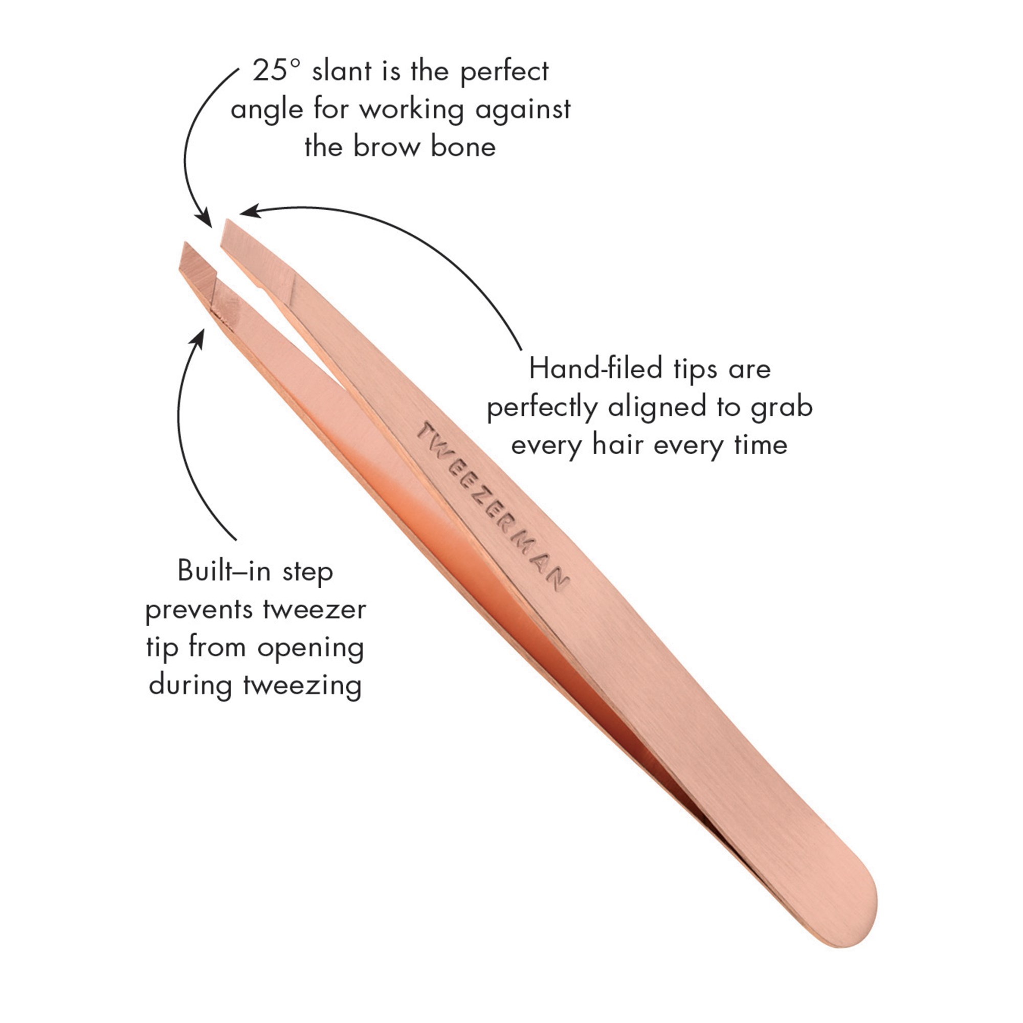 Wymodeluj swoje brwi przy pomocy klasycznej, wielokrotnie nagradzanej pęsety z ukośnymi końcówkami. Ta skośna pęseta, znana ze swojej precyzji, jest podstawą Twojej rutyny kosmetycznej. Posiada idealnie dopasowane, ręcznie profilowane końcówki, które chwytają każdy włosek, za każdym razem.