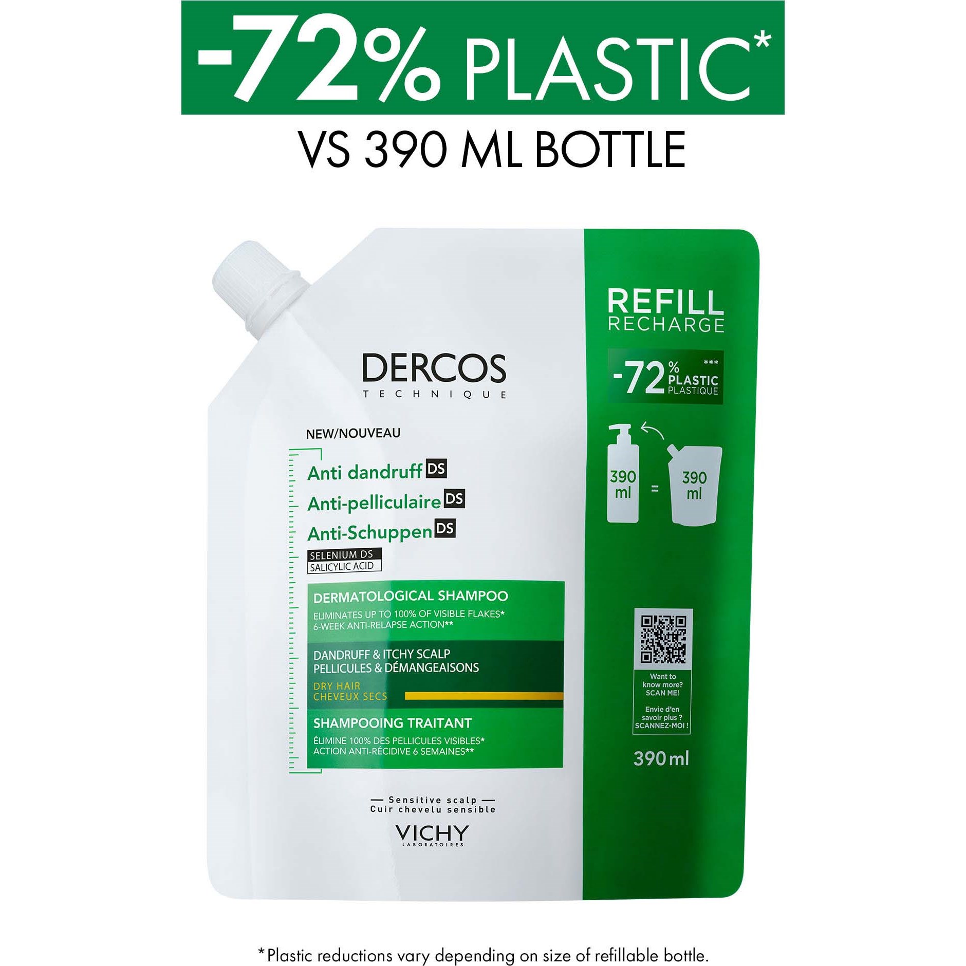 VICHY Anti Dandruff Dercos Shampoo for Dry Hair Refill 390 ml