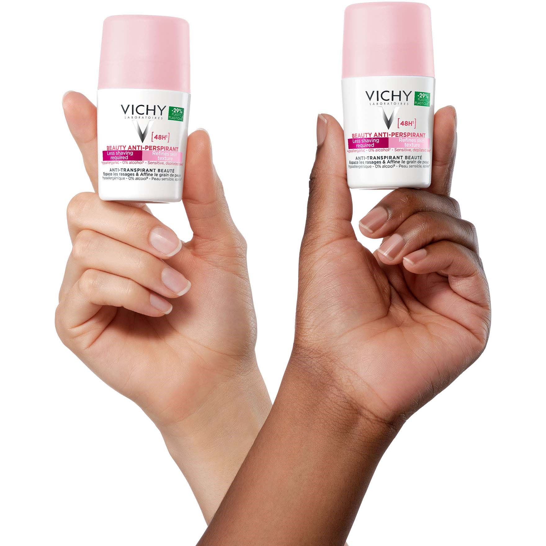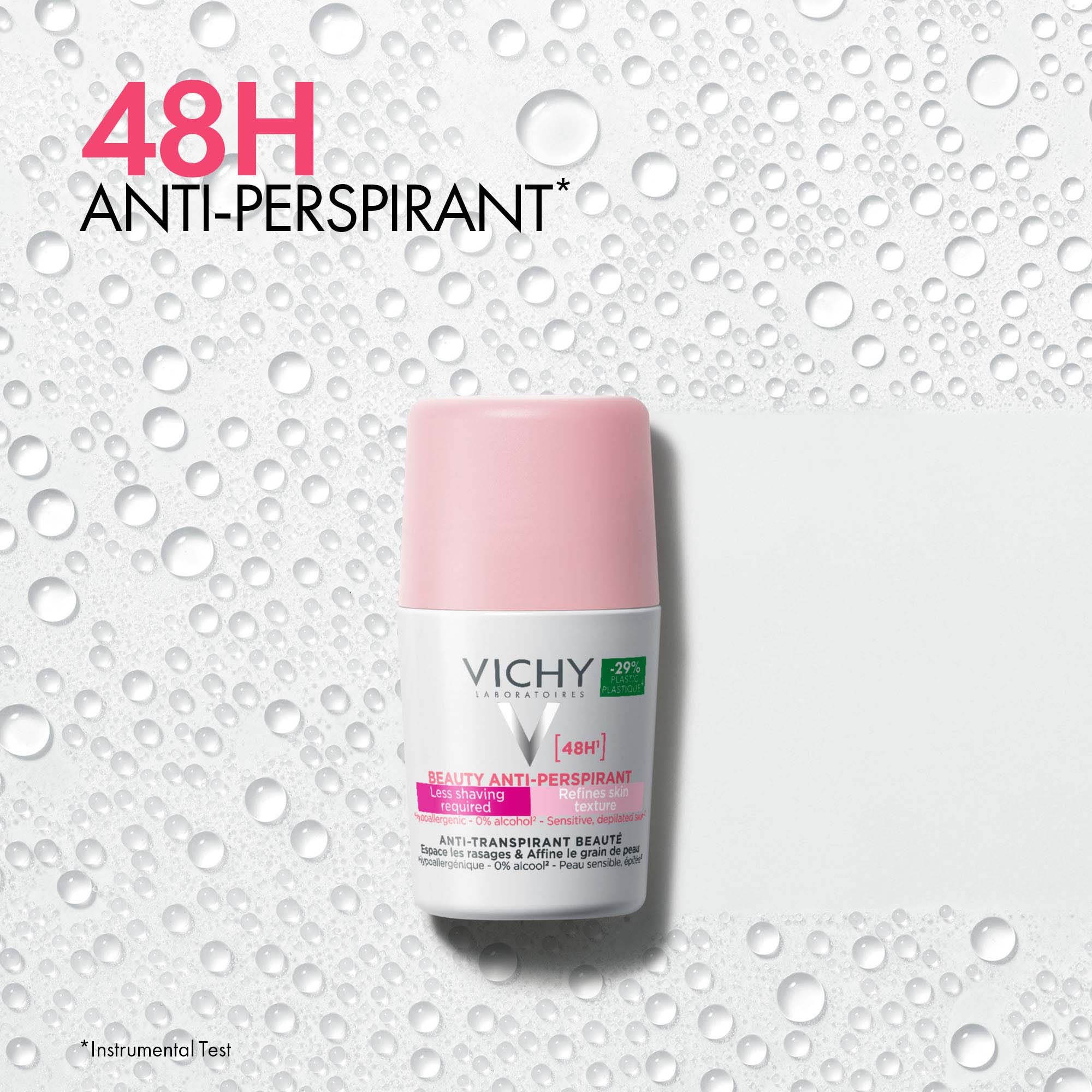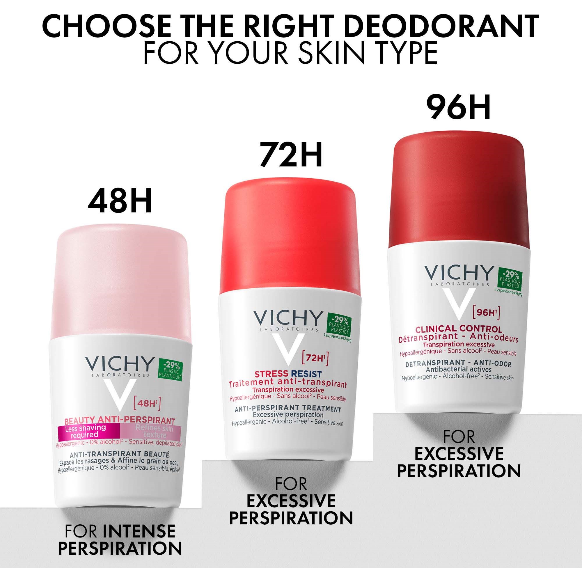 Vichy chce, abyś doświadczał uczucia świeżości i braku potu przez cały dzień. Dlatego dezodoranty nie tylko zapobiegają powstawaniu nieprzyjemnego zapachu potu, który powstaje w wyniku rozwoju bakterii, ale także działają antyperspiracyjnie (przeciwdziałają poceniu się).