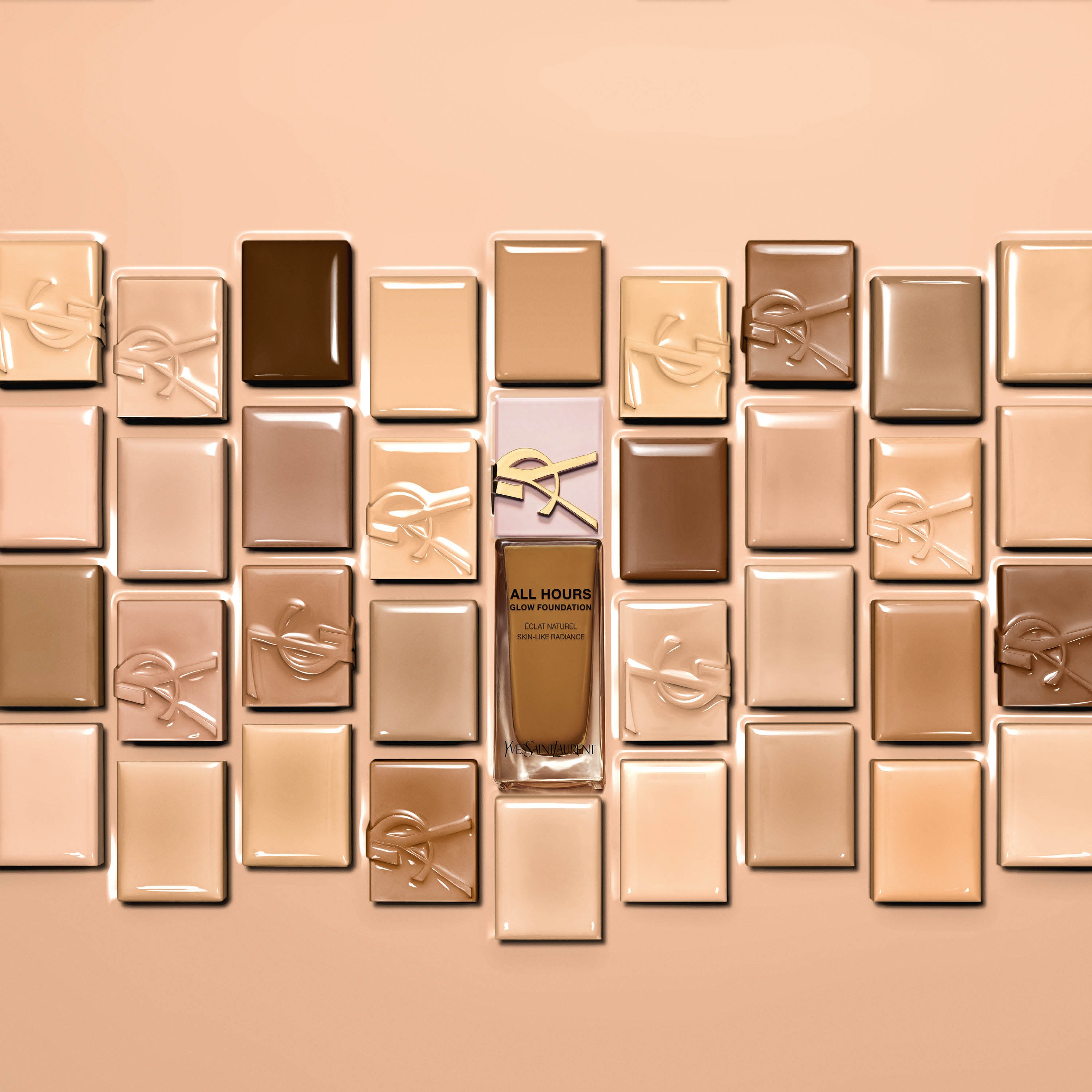 Yves Saint Laurent All Hours Glow FoundationOdkryj podkład Yves Saint Laurent All Hours Glow Foundation, który zapewnia długotrwały efekt z promiennym wykończeniem. Natychmiast wyrównuje koloryt, wygładza i rozświetla skórę. Lekka formuła z budowanym kryciem i 24-godzinną trwałością. Wzbogacony kwasem hialuronowym i niacynamidem sprawia, że skóra staje się promienna i pełna blasku.Formuła wzbogacona składnikami pielęgnacyjnymiPodkład z formułą serum z kwasem hialuronowym i niacynamidem zapewnia komfort przez cały dzień i intensywnie nawilża.Zalety24-godzinna trwałość24-godzinne nawilżenieNaturalne, rozświetlone wykończenieFormuła wzbogacona składnikami pielęgnacyjnymiBudowane krycieOdpowiedni dla wrażliwej skóry*Test konsumencki, 120 osób. Test instrumentalny.EfektNatychmiast wyrównany koloryt, wygładzona i rozświetlona skóra. Długotrwałe, naturalne wykończenie przez cały dzień.OdcieniePodkład dostępny w 40 odcieniach, zastępuje Touché Eclat Foundation. 4 z 40 odcieni odpowiadają wcześniejszym odcieniom Touché Éclat Foundation.LC6 = BR30 Touché Eclat Foundation MC5 = B40 Touché Eclat Foundation MN1 = B30 Touché Eclat Foundation MN4 = B50 Touché Eclat Foundation MN9 = BD50 Touché Eclat FoundationPodkład uzupełnia serię All Hours, w skład której wchodzą All Hours Foundation, All Hours Precise Angles Concealer, All Hours Hyper Bronzer, All Hours Hyper Luminize Highlighter, All Hours Hyper Finish Powder i All Hours Hyper Blur Loose Powder.Sposób użycia: Nałóż palcami, pędzlem lub gąbką.Nałóż podkład od środka twarzy na zewnątrz, aby wyrównać koloryt. Stosuj stemplujące ruchy, aby zbudować krycie tam, gdzie to potrzebne.Użyj opuszków palców, aby uzyskać bardziej naturalne, średnie krycie. Dla średniego do mocnego krycia użyj pędzla, który gładko sunie po skórze.