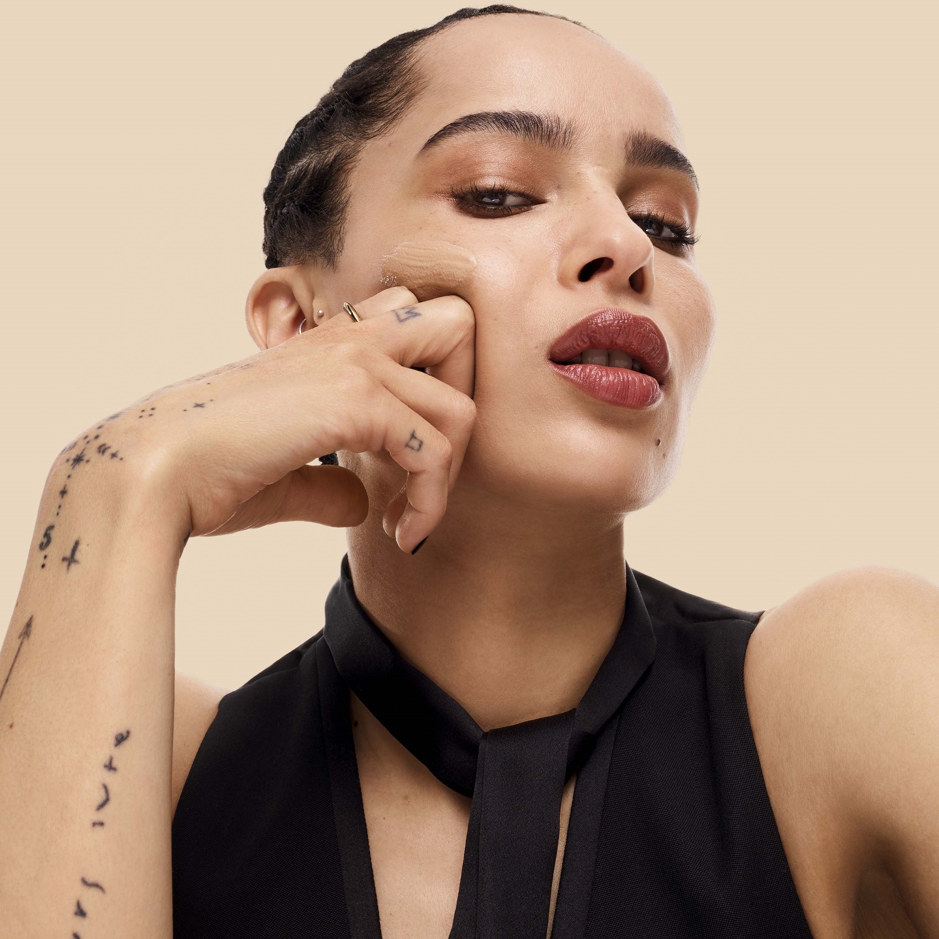 Aby uzyskać bardziej naturalne, średnie krycie, użyj opuszków palców.
