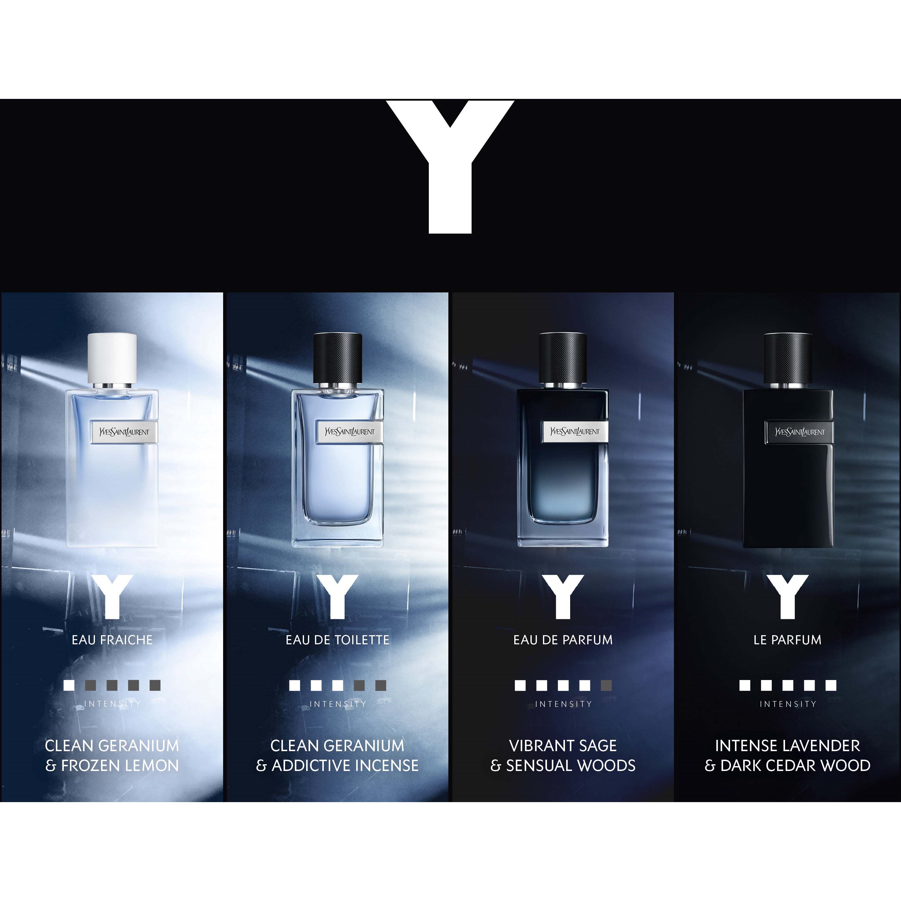Nowy Y EAU DE TOILETTE to mineralny, drzewny zapach łączący świeżą lawendę i aromatyczną szałwię muszkatołową z Prowansji z rześkim, wertykalnym akcentem serca geranium z Madagaskaru – trzy składniki stworzone dla YSL BEAUTY. Świeżość połączona z ciepłem zmysłowych nut drzewnych, seksowną ambrą i uzależniającym kadzidłem. Nowy poziom intensywności. Nowa, błękitna fala czystości i seksapilu. Odświeżający, a jednocześnie mocny i trwały, o wyjątkowej 12-godzinnej intensywności w jednym sprayu, Y EAU DE TOILETTE to najlepszy komplement. Łatwy do noszenia. Łatwy do pokochania. Ponieważ jest chłodniejszy, gorętszy i bardziej trwały niż kiedykolwiek.